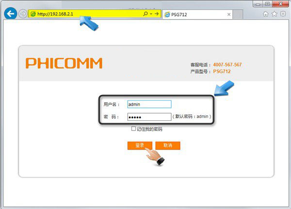 2、在瀏覽器中輸入192.168.2.1后,就可以打開斐訊路由器登錄界面,然后使用默認的用戶名和密碼admin,然后點擊登錄,就可以進入路由器管理設置界面了,如圖。