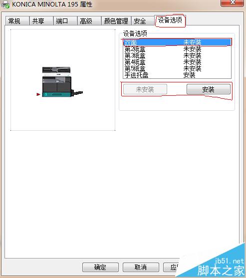 6、安裝完成后,在列表欄就會在雙面打印后面顯示“安裝”