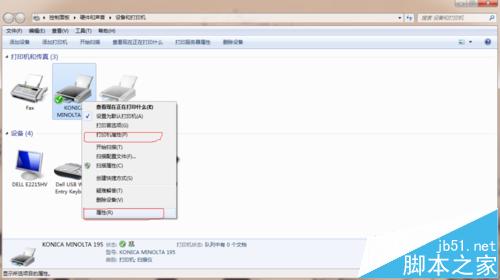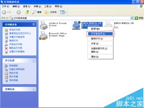 3、左擊“打印機和傳真”彈出對話框,在當(dāng)前對話框里選取相應(yīng)的打印機,右擊選擇“屬性”選項