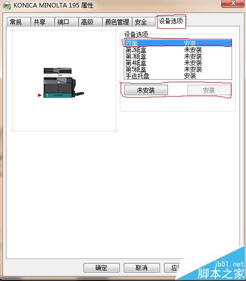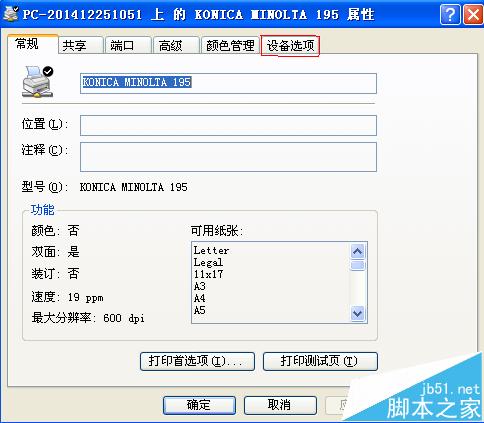 4、選取“屬性”選項后彈出屬性對話框,在對話框里選擇“設(shè)備選項”選項卡
