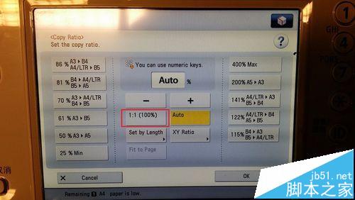 8、設(shè)置復(fù)印比例為100%:點擊 1:1 (100%)。比例調(diào)整后,點擊OK。