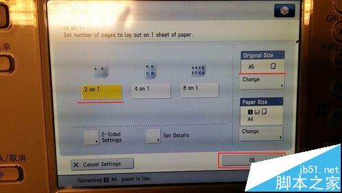 5、確認(rèn)源紙張和最終紙張大小:這里如果是2 on 1, 且源紙張大小已改為A5,就可以點擊OK確認(rèn)。