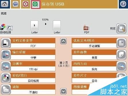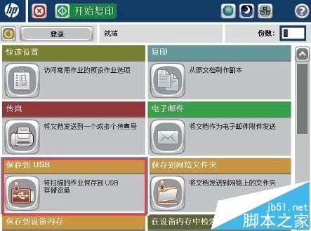 4、從產品控制面板的主屏幕中,滾動至并輕觸保存到 USB 按鈕