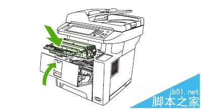4、重新裝上打印碳粉盒,然后合上前擋蓋。如果卡紙消息仍然顯示,則說(shuō)明設(shè)備內(nèi)還有介質(zhì)。 在其它位置查找介質(zhì)。