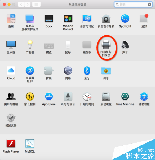 2.在“系統(tǒng)偏好設置”里找到“打印機和掃描儀”