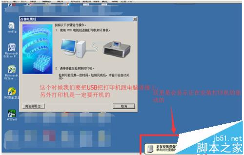 4、這個時候要確保打印機是有開機的,并且把USB的打印線跟電腦連接上了才可以的。