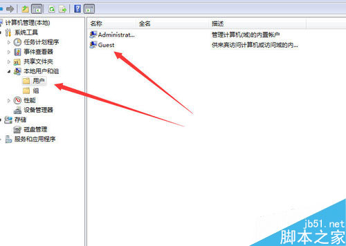 3.鼠標(biāo)雙擊左鍵“用戶", 雙擊鼠標(biāo)左鍵“Guest”,如圖:
