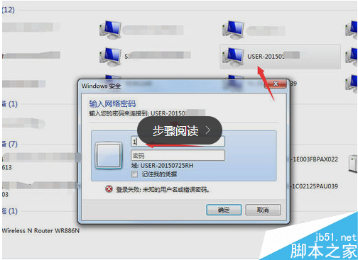6.主客機(jī)重啟之后,在客機(jī)上雙擊“網(wǎng)絡(luò)”,進(jìn)入電腦局域網(wǎng)組頁面,找到安裝打印機(jī)的電腦名稱,雙擊。如還提示要輸入用戶名和密碼,此時隨便輸入一個用戶名名稱,比如 “1”,不用輸入密碼,按回車鍵。即可看到“打印機(jī)”名稱,如圖: