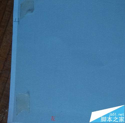2、把剛打印出來的紙,在左上角打印的地方粘上兩面膠,緣灰色邊緣貼上照片紙。