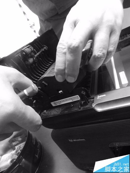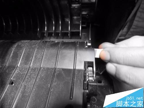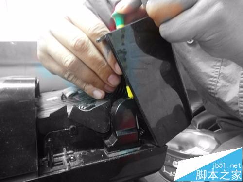8、安裝滾心先裝左邊,然后用力將右邊扳開,將其安裝到位,再用改刀安裝排線盒。