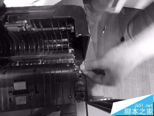 2、拿螺絲改刀,取掉排線盒螺絲,(位于送紙器左邊,)然后把排線盒移開,螺絲撿好。