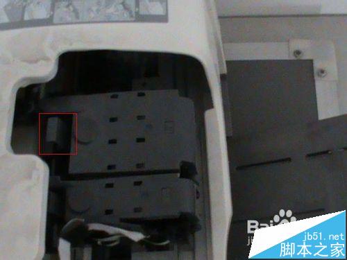 5、按住(上圖紅色的)卡子,往外少用力,打開墨盒蓋子。