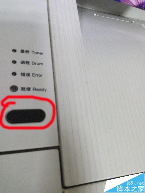 4、一手按住打印機上的啟動鍵,一手打開打印機開關