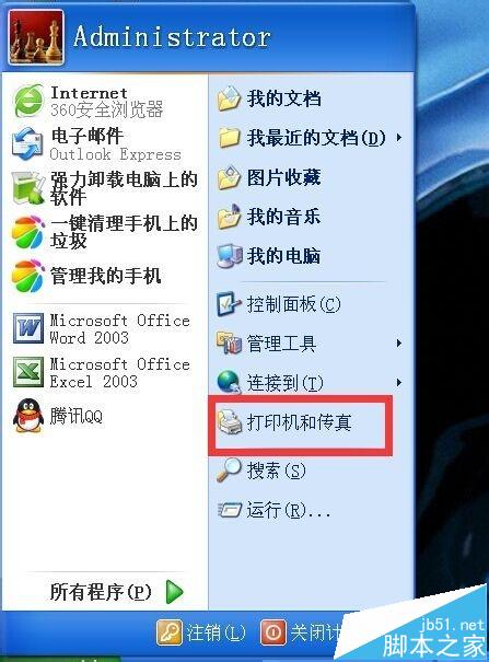 2、選擇打印機(jī)程序,緊接著,需要選擇“所有程序”,在電腦顯示的所有程序中,選擇“打印機(jī)或傳真”選項(xiàng),即可選中打印機(jī)所對(duì)應(yīng)的應(yīng)用程序