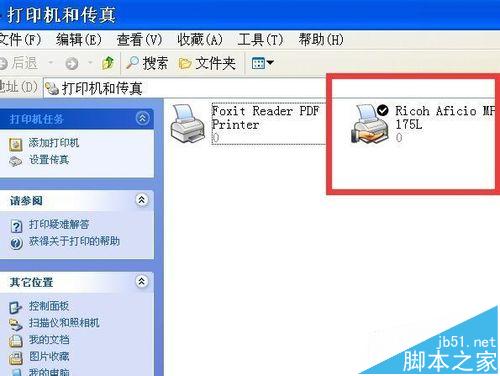 3、選擇打印機(jī),接著,電腦桌面上會(huì)彈出一個(gè)窗口,如圖所示,窗口名字為“打印機(jī)和傳真”,在該窗口下,選擇需要取消文檔的打印機(jī),小編的是對(duì)應(yīng)的理光175L,如圖選擇“Ricoh Aficio MF 175L”,即可選擇打印機(jī)