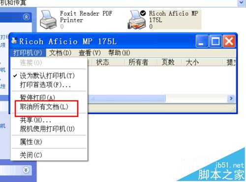 在設(shè)置的時(shí)候,有兩種方法,方法一是,選擇“取消所有文檔”,則電腦打印機(jī)當(dāng)時(shí)的所有打印任務(wù)都會(huì)取消,這種方法沒(méi)有針對(duì)性,類似于任務(wù)的清空