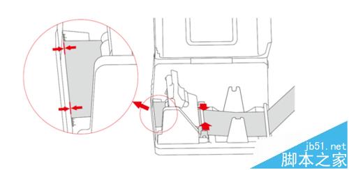 3、將首張面單的前邊緣與撕紙標尺的邊緣對齊,紙張導向片靠緊面單,但不能過于擠壓使面單變形。