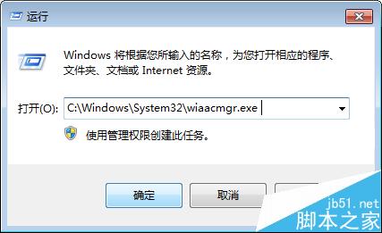 3、然后打開電腦開始按鍵,點擊運行,輸入這段文字C:/Windows/System32/wiaacmgr.exe 點擊確定,就可以了掃描了
