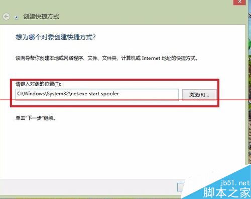 1、輸入“C:/Windows/System32/net.exe start spooler”(不帶引號,如圖)后,單擊“下一步”