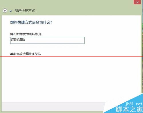 2、快捷方式的名稱欄,建議輸入“打印機啟動”等方便自己識別記憶的名稱。然后,單擊“完成”