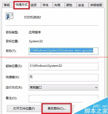 2)在彈出的對話框中,選擇“快捷方式”標簽后,單擊“更改圖標”按鈕。