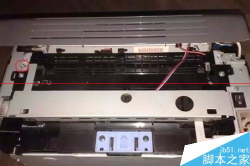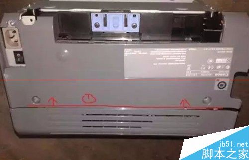 2、這就需要打開硒鼓傳感器,對照說明書找到傳感器位置。接下來,我們來拆機看一下,先拆后蓋的兩個螺絲。
