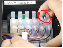 第三步:如果是人改連供并且一體墨盒上帶清零開(kāi)關(guān),左圖紅色圈內(nèi)即是清零開(kāi)關(guān)的。當(dāng)墨盒位移到更換位置不拿出來(lái),按住開(kāi)關(guān)10秒。然后點(diǎn)擊下一步直到墨盒開(kāi)始抽墨即可正常使用。如果擦拭或清零后還是不行,請(qǐng)更換。
