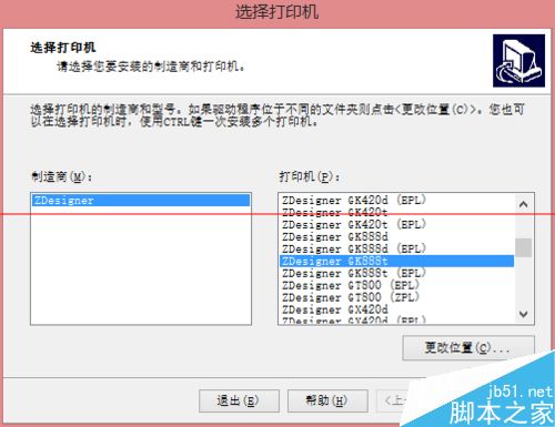 4、制造商選擇“ZDesigner”,打印機選擇“ZDesigner GK888t”。
