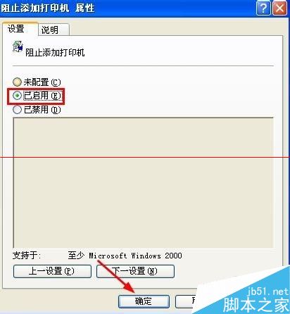 5、阻止添加打印機(jī)屬性窗口中默認(rèn)的這里的未配置。