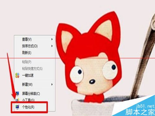 1、小伙伴認(rèn)真看,我們首先在桌面上,單擊鼠標(biāo)右鍵,桌面就會(huì)出來(lái)一個(gè)對(duì)話框,對(duì)話框里面有很多選項(xiàng),比如查看刷新什么的,這些我們都不管,我們單擊左鍵,點(diǎn)擊最下面的“個(gè)性化”就可以了。