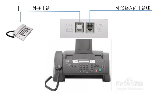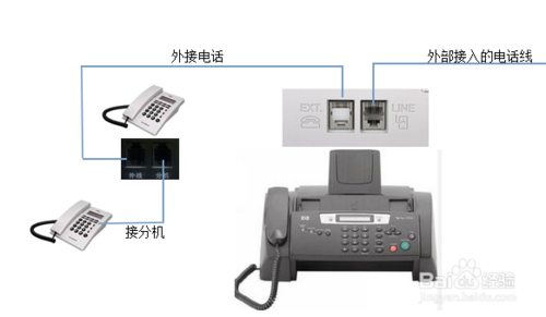 1、每一個傳真機的后面都會有二個電話線接口。一個為LINE口,接電話線。另一個口為EXT口為外接電話(也可稱分機)