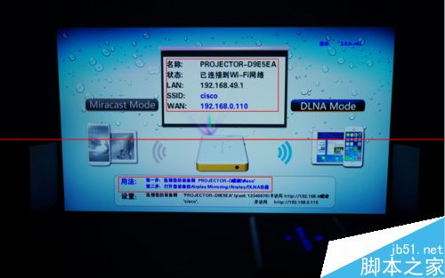 1、完善的wifi display功能是酷樂視Q6最值得玩的,通過左右可以選擇miracast或DLNA模式,或向右波動投影機的開關(guān)按鍵也可以實現(xiàn)模式的切換。Miracast是采用安卓系統(tǒng)設(shè)備獨有的功能,我手中的設(shè)備不支持所以就為大家多說說DLNA吧。DLNA功能是智能設(shè)備上安裝有支持DLNA功能的軟件,它與系統(tǒng)的關(guān)系不大,軟件可通過無線將圖片、視頻等輸出到投影機上,但不能做為顯示鏡像投攝使用。Q6的DLAN兼容蘋果Airplay,使用蘋果設(shè)備可以投射鏡像。使用DLNA需要用手機搜索上方紅框中 Q6的設(shè)備名稱并進行連接,再通過下方紅框的說明進行簡的設(shè)置即可使用。上方紅框中的SSID為自己家中無線路由的名稱,使用Q6連接到家中路由后,其它所連接Q6的設(shè)備也可以進行網(wǎng)絡(luò)訪問。