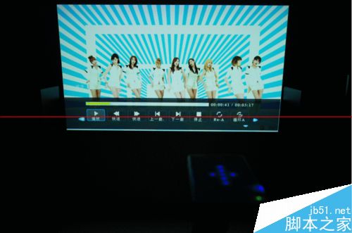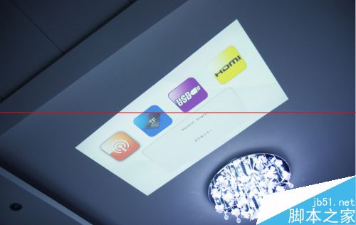 6、除了傳統(tǒng)的水平投攝我們也可以換個新的玩法,可以將Q6垂直投射到天花板上,只需要借助腳架固定好角度就可以做到。這樣就可以舒服的躺在沙發(fā)上或床上,愜意的看著天上的畫面悠哉悠哉,不禁感嘆生活是多么的精彩。下圖投射的畫面為Q6的開機主界面,從左向右為:wifi display、TF卡播放、USB播放、HDMI連接。