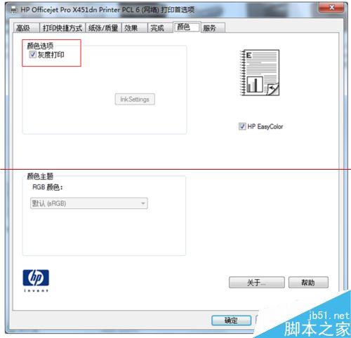 3、此為灰度打印選項,如灰度打印,黑色不能滿足用戶要求,請進入打印機的EWS (Embedded Web Server嵌入式 Web 服務器)