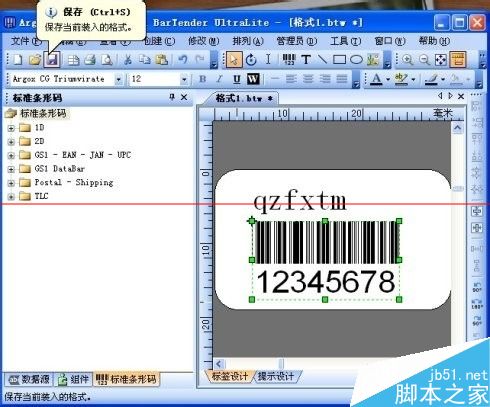 單擊條碼圖標(biāo),即可插入相關(guān)條碼,上圖為code 39-regular條碼。
