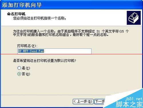 9、然后選擇 HP MFP send fax 單擊 下一步