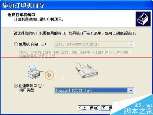 4、然后選擇 “創(chuàng)建新端口”,端口類型選擇 “standard TCP/IP port”