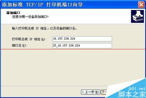 5、然后輸入 mfp一體機(jī)的IP地址后 單擊 下一步