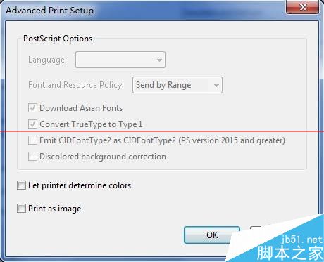 B、選中”Print as image(作為圖像打印)”,點擊OK后在打印