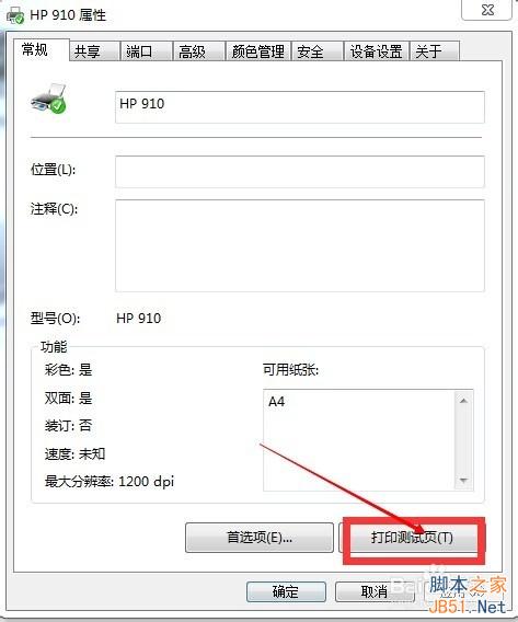 可以看到如圖界面,鼠標(biāo)左鍵點擊打印測試頁,看看打印機(jī)是否能正常打印。