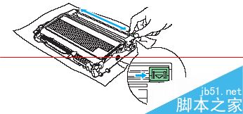 2、慢慢取出硒鼓單元和墨粉盒組件,我們建議您將墨粉盒放置在一張易處理且表面干凈平滑的紙上,以防墨粉潑灑出來. 為防止靜電對打印機造成損壞,請勿觸摸圖中所示的電極。