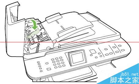 2、 提起綠色手柄,旋轉拾紙機件,直至其打開。