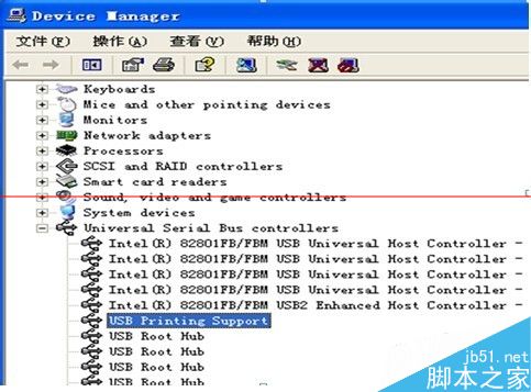6. 選擇 USB Printing Support 點擊下一步 點擊安裝 程序安裝完畢后 , 點擊完成 , 打開通用串行總線控制器 , 此時會在該項的下面出現 USB Printing Support 端口。圖6
