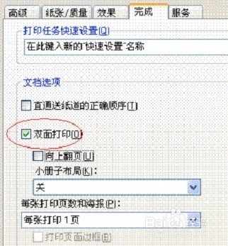 d. 回到打印機和傳真的界面后,在P2050圖標上鼠標右鍵打開打印首選項,在打開完成的選項卡,勾選雙面打印,如下圖: