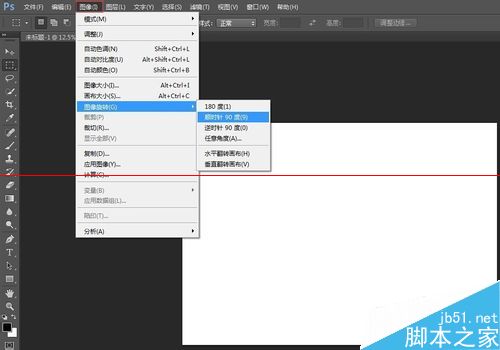 5、在菜單“圖像”-“圖像旋轉”中將新建的空白圖片旋轉90度,如圖: