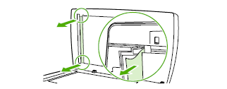 3、合上 ADF 蓋板。清除 ADF 的介質卡塞打開 ADF 端蓋。檢查是否撕下了 ADF 內部的所有包裝帶