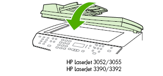 9、合上平板掃描儀蓋板(HP LaserJet 3390,3392,3052,3055 )。