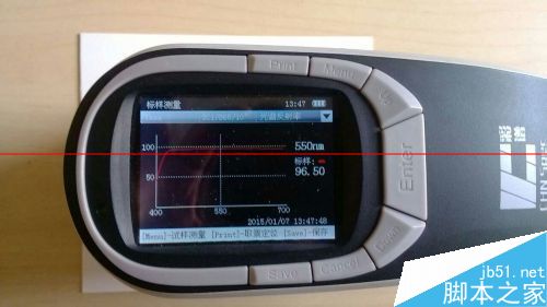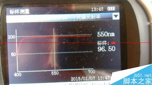 4、通過up 和down鍵可以移動光標,顯示各個波長下的反射率,如圖中顯示550nm,反射率為96.50