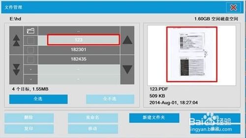 1.在"資源管理器"中要查看保存的文件時,可以看到文件名為123的文件,但是此時只能看到第一頁的掃描件預覽,而無法看到后面的掃描件,到所保存的位置(U盤或網絡文件夾)查看時就能發現一個PDF文件里會有多個掃描的文件。