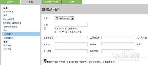 1、首先在IE地址欄內輸入打印機端的IP地址,然后點擊:"設置"-"掃描到網絡",進入后點擊"添加網絡文件夾"